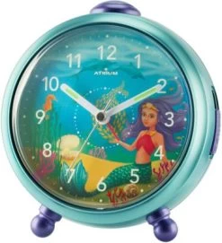 Mit einem farbenfrohen Meerjungfrauenmotiv begeistert dieser Kinder Wecker der Marke ATRIUM. Die Lichtfunktion ermöglicht das Ablesen der Uhrzeit auch im dunklen Kinderzimmer. Die Bedienung erfolgt ganz leicht mit nur einem Knopf.