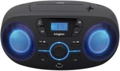 CD-Spieler mit UKW-Turner (PLL) mit automatischem Sendersuchlauf und Senderspeicher (30 Stationen), USB-Anschluss für MP3 Wiedergabe, AUX-IN- Anschluss (3,5mm Klinkenstecker), 3,5mm-Kopfhöreranschluss, Lichteffekte ON/OFF: Rot-gelb-weiß-grün-lila-marineblau-türkis, CD-Wiederholfunktion (ein Titel/ganze CD) & Programmierfunktion, LCD-Display, Stromversorgung 230V oder 6xLR14 (nicht enthalten).
