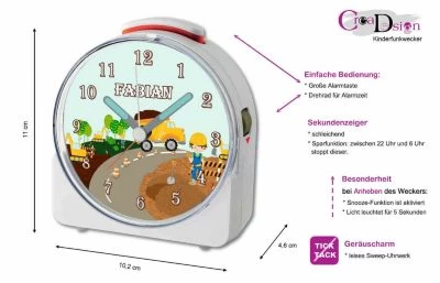 Kinder Funkwecker Motiv Baustelle – ein absolutes Unikat