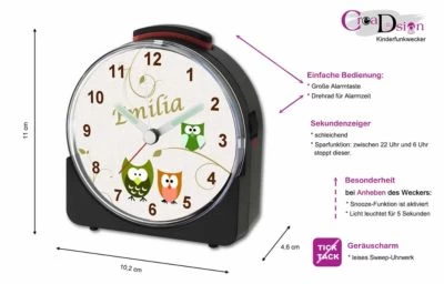 Kinder Funkwecker Motiv Eule Grün Beige – ein absolutes Unikat