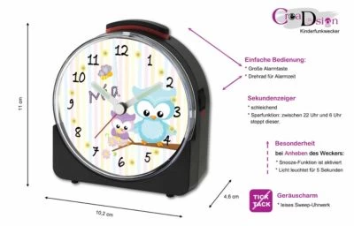Kinder Funkwecker Motiv Eule Frühling – ein absolutes Unikat