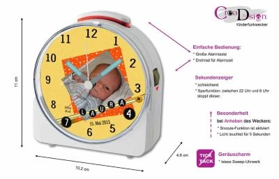 Kinder Funkwecker Motiv Scrapbooking Orange – ein absolutes Unikat