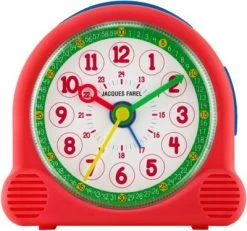 Ein echter Hingucker- der JACQUES FAREL Kinder Wecker in kräftigem Farbton! Damit Kindern das Erlernen der Uhrzeit erleichtert wird, sind Ziffernblatt und Zeiger unterschiedlich gefärbt.