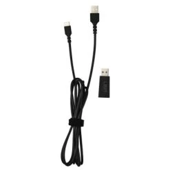 Kabelloses 2,4-GHz-Headset Inklusive 2,4-GHz-USB-Sender Mikrofon mit geräuschreduzierendem, einziehbarem Arm 50-mm-Hochleistungs-Neodym-Lautsprecher Kühlende Proteinpads Scharniere und Schutzgitter aus Metall Aufladen über USB-A auf USB-C (1,8 m Kabel inkl.) Kompatibel mit: PlayStation 4, Xbox One, Nintendo Switch, PC-Laptop/Desktop, Mac Frequenzbereich: 20 Hz – 20 kHz Empfindlichkeit (SPL): 119 dB Akkulaufzeit (Bluetooth): Bis zu 18 Stunden pro Ladung Verbindung: USB Frequenzbereich: 20 Hz – 20 kHz Impedanz: 32Ω Maximale Nennleistung: 20mW Mikrofon: Einziehbares Mikrofon mit Geräuschunterdrückung Empfindlichkeit: Kopfhörer; 119 db, Mikrofon; 42 dB (2,2 kΩ) Serie: Odins Serie Lautsprechertyp: 50-mm-Hochleistungslautsprecher Artikelfarbe: Schwarz Kabellänge: 1,8 m Produkttiefe (mm): 85mm Produkthöhe (mm): 191mm Produktgewicht (kg): 272 gr Produktbreite (mm): 171mm