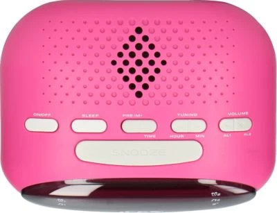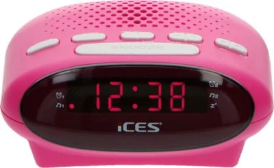 Der ICES Radiowecker ICR-210 Pink kann ganz konventionell als Wecker und auch als UKW-Radio verwendet werden. Mit der integrierten Doppelalarm-Funktion können zwei getrennte Weckzeiten eingestellt und gesnoozed und natürlich auch mit unterschiedlichen Alarmtönen (Summer, Radio) belegt werden. Die Mitgelieferte Kabelantenne verbessert den Radioempfang ungemein und ist beinahe unsichtbar. Das 0, 6 Zoll große Display leuchtet rot und ist angenehm leicht ablesbar. Falls die reguläre Stromversorgung einmal unterbrochen werden sollte, sorgt die Standby-Batterie (nicht enthalten) dafür, dass man am nächsten Morgen dennoch pünktlich geweckt wird.