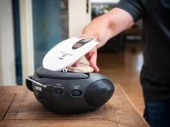 Lenco SCD-24 UKW-Radio mit CD-Player und Teleskopantenne. Das Lenco SCD-24 ist ein praktisches tragbares FM-Radio inklusive CD-Spieler. Es ist ideal für Jung und Alt geeignet, da es sehr robust ist, ein ansprechendes Design hat und über einfach zu bedienende Tasten verfügt. Es ist mit einer 3,5mm Kopfhörerbuchse ausgestattet. Sind Sie oft unterwegs? Das tragbare FM-Radio inklusive CD-Spieler ist der perfekte Reisebegleiter. Mit dem Lenco SCD-24 haben Sie Ihre Lieblingsmusik immer und überall dabei. Das Tonsignal können Sie durch die zwei eingebauten Lautsprecher genießen oder Sie stecken, für eine private Musiksession, einfach ein paar Kopfhörer ein. Sie können das FM-Radio inklusive CD-Spieler ganz einfach an den Strom anschließen oder per Batterie betreiben. Der Lenco SCD-24 ist in pink, rot/schwarz, blau/schwarz, weiß, violett und grün/schwarz erhältlich.