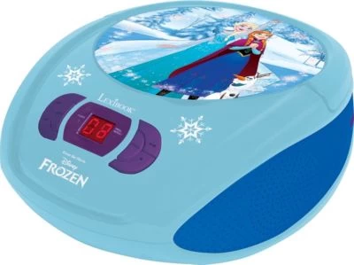Tragbarer CD-Spieler für Kinder im neuen Die Eiskönigin-Design mit Aux-Anschluss zur Wiedergabe externer Geräte wie Handy oder MP3-Player.
