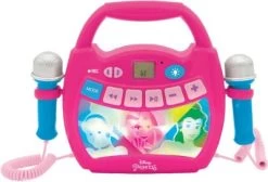 Wow! Für alle kleinen und großen Gesangs-Fans und künftigen Stars kommt mit diesem tragbarem Karaoke-Player von Lexibook ein farbenfroher Begleiter für die ersten Schritte auf der Bühne! Die Karaoke-Box funktioniert kabellos mit Bluetooth®-fähigen Geräten und punktet mit 2 Mikrofonen. So können gleich zwei Künstler*innen gleichzeitig im Duett auftreten. Für witzige und coole Soundeffekte können verschiedene Stimmen gewählt werden: eine hohe, eine tiefe oder eine Echo-Stimme – so ist für alle Gesangstalente der ganzen Familie etwas dabei. Der Player ist mit einem praktischen Ablagefach für die Kabel ausgestattet und kann prima mitgenommen werden.
