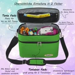 • Platz für Toniebox, Ladegerät, Kopfhörer und insgesamt für 68 Tonies