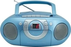 Das GerĂ€t kann mit Batterien betrieben werden und ist somit auch der perfekte Begleiter fĂŒr unterwegs. Neben dem integrierten, gut klingenden, Stereo-Lautsprechersystem ist in das geschwungen designte CD-Kassetten-Radio auch ein Kopfhöreranschluss vorhanden.
