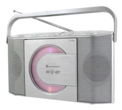 Ideal für schmalere Stellen wie z.B. in Küchen, Fensterbänke etc.Der CD Player ist in die Gehäusefront integriert und unterstützt mit CD, CD-R/CD-RW und dem datensparendes CD-MP3 alle wichtigen Formate. CD-Titelprogrammierung und CD-Wiederholfunktion runden das Ausstattungspaket ab.Das Radio unterstützt UKW PLL, mit dem Sie Programme in sehr guter Soundqualität empfangen. Dabei haben Sie 5 separate Stationstasten für Ihre im Festsenderspeicher abgespeicherten Lieblingssender, die so einen schnellen und bequemen Senderwechsel ermöglichen.Das Kofferradio mit seinem praktischen Tragegriff unterstützt sowohl Netz- als auch Batteriebetrieb und überzeugt mit seiner Mobilität und dem kräftigen Stereo-Sound.