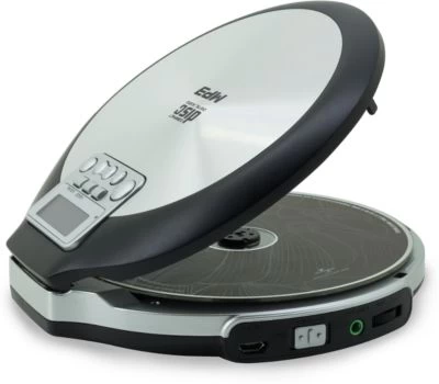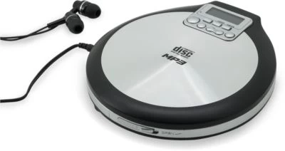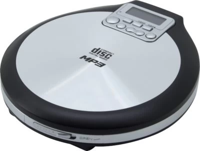 Tragbarer CD/MP3 Playermit Hörbuchfunktion in silber.