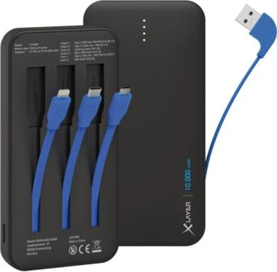 Mit diesem Ladegerät von XLayer können Handys, Tablets oder Navigationsgeräte von unterwegs aus über den eingebauten Lightning-, Typ C oder Micro-USB Ausgang problemlos aufgeladen werden. Dank der XLayer Powerbank PLUS All-in-One PD 18W gehören leere Akkus Ihrer mobilen Geräte der Vergangenheit an. Der leistungsstarke Lithium-Polymer-Akku ermöglicht es Ihr mobiles Endgerät schnell wieder einsatzfähig zu machen. Durch die eingebauten Ladekabel brauchen Sie sich keine Gedanken mehr über kompatible Anschlussmöglichkeiten machen. Die LED-Ladestandsanzeige hält Sie dabei immer über die Batteriekapazität der Powerbank auf dem Laufenden. Zusätzlich ausgestattet mit der Qualcomm Quick Charge 3.0-Technologie genießen Sie mit dieser revolutionären Technik die Schnelladefunktion der Powerbank. Das handliche Taschenformat macht diese Powerbank transportabel.